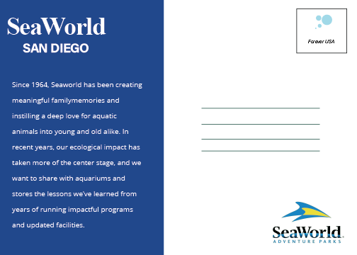 “SeaWorld is often known for its family friendly aquatic experience. This beautiful, adventurous park offers great times and sunshine for its customers by offering them a variety of rides and interactive experiences with the animals.” Quote from student project manager.